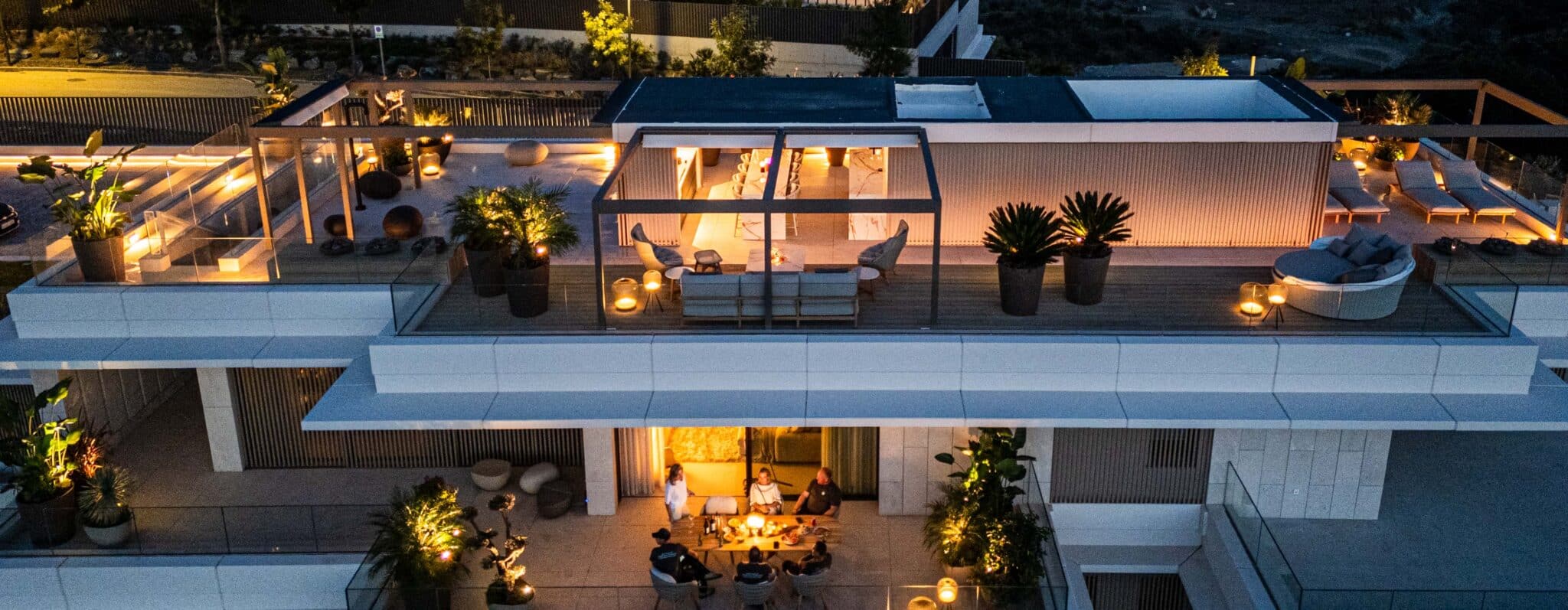 Een dakterras biedt de luxe van buitenleven in de stad — met uitzicht, licht en rust. Van lounge tot buitenkeuken, van jacuzzi tot groenstructuren: elk detail draagt bij aan comfort op hoogte. Het ontwerp wordt gemaakt door Gardens Beyond Imagination, de realisatie door DON Hoveniers, in samenwerking met het bouwbureau.